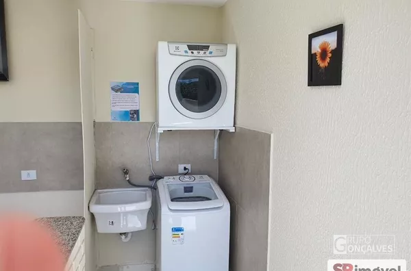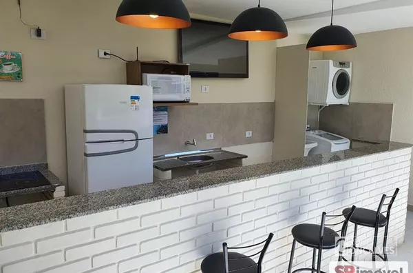 Os ambientes compartilhados incluem banheiros, área de serviço e cozinha completa e equipada.