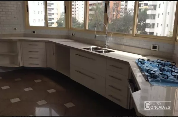 Apto 330 m2 com 04 suítes, 04 salas, escritório, lavabo , 02 quartos de empregada com wc, área de serviço, cozinha, copa, área gourmet com churrasqueira e piscina privativa, sauna privativa. Armários em todos os closet’s, 05 vagas de garagem, 02 depósitos